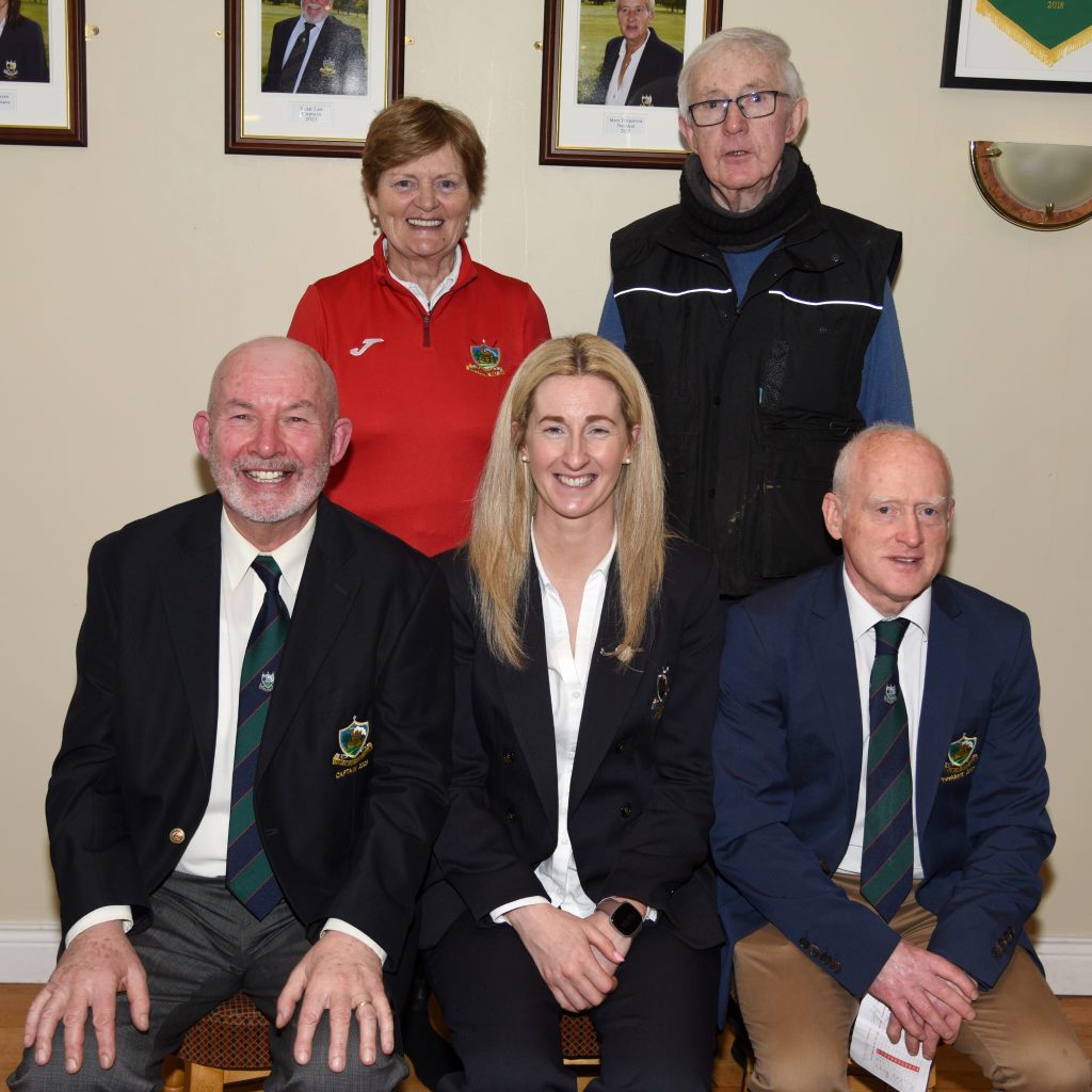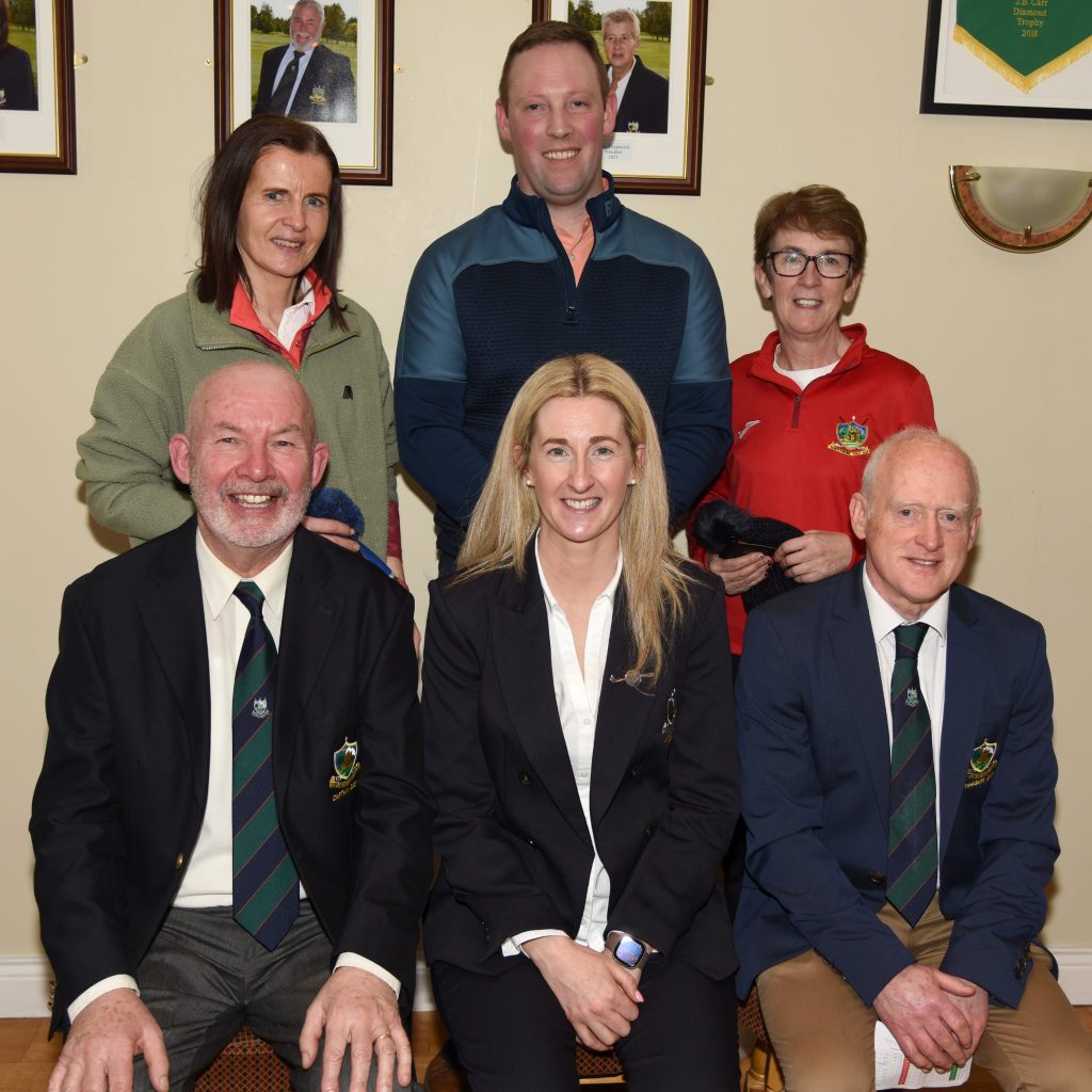 B.R. l.R. Helan Hayes, Ciaran Hassett. Bridget Kennedy. F.R. L.R. Club Captain John Greed, Lady Captain Michelle Hassett, Club President Sean Cashman.