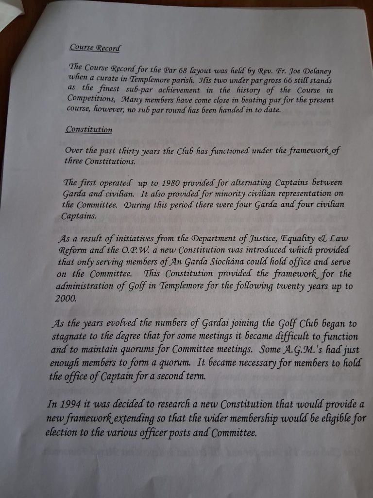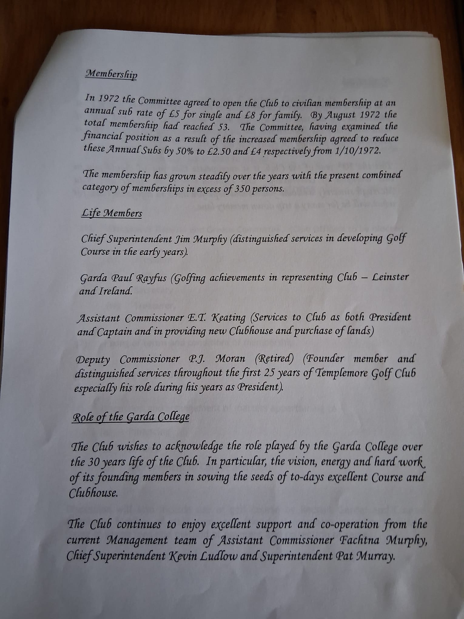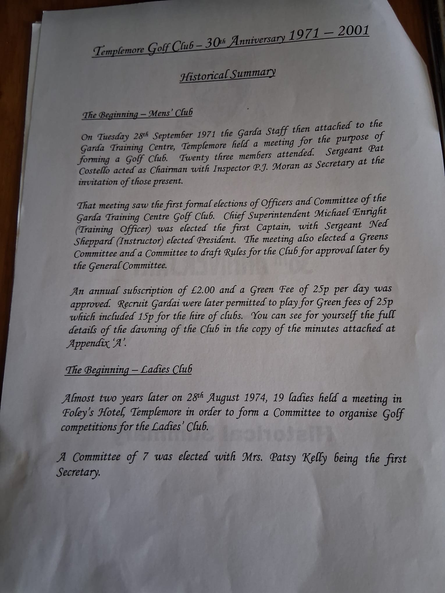 The committee and members of Templemore Golf Club extend their heartfelt condolences to his wife Mary, his sons, daughters, and the extended Nolan family. May Paddy Rest in Peace.