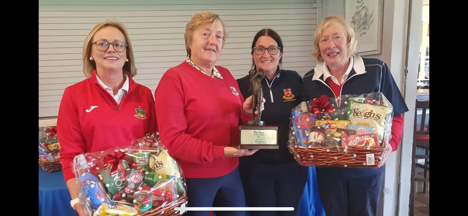 8/10.  Congratulations to Josie Bourke, Sheila Delaney, Sadie Tynan and Mary Hayes Kenny who won the Glenn’s Trophy in Birr.  Another victory for our club. Glenn’s Trophy is